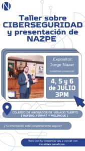 Taller Sobre Ciberseguridad y Presentación de Nazpe 4, 5 y 6 de JulioPor nazpe2018 / 21 de junio de 2022 Taller Sobre Ciberseguridad y Presentación de Nazpe 4, 5 y 6 de Julio Expositor: Jorge Nazar